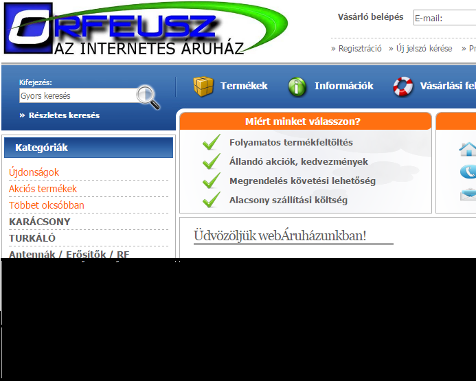 Online webshop nagy felszereltséggel